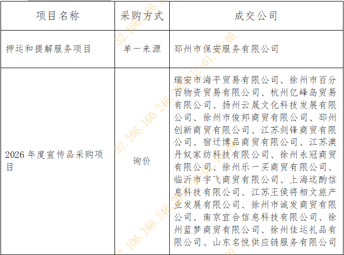 江蘇邳州農(nóng)村商業(yè)銀行股份有限公司押運(yùn)和提解服務(wù)等項(xiàng)目招標(biāo)集采工作已經(jīng)按照法定程序結(jié)束,現(xiàn)將采購結(jié)果公示如下: